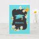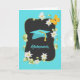Stilvolle deutsche Abschluss-Grußkarte in Türkisblau, mit einer dunkelgrauen Efeu-gerahmten Grafik, in der Mitte, mit edelweiss Blume und einem gelben Schmetterling. Die Mitte des gerahmten Bereichs wird von einer türkisblauen Massivmütze und einer maßgeschneiderten deutschen Textlektüre geschmückt. Benutzerdefinierter Text, unten vorne und innen der Karte, sind alle bereit, für Ihren Abschluss zu personalisieren.