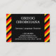 Dieses Visitenkartendesign könnte von einem beruflichen wie einem deutschen Sprachlehrer, einem deutschen Tutor oder einem deutschen Sprachexperten verwendet werden. Name, Beruf und Kontaktdaten können personalisiert sein. Es ist auch mit schwarzen, roten und gelben Streifen inspiriert durch die Farben der deutschen Nationalflagge.