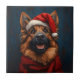 Deutscher Hirte in einer Weihnachtsmannmütze Fliese