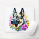 Deutscher Hirte in rosa und gelben Blumen Mousepad