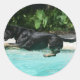 Deutscher Hirte springt in Wasser Runder Aufkleber
