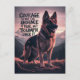Ein deutscher Schäferhund steht stolz auf einem felsigen Berggipfel, auf dem ein motivierend Zitat über den Mut dahinter zu sehen ist. Die untergehende Sonne strahlt ein warmes Licht auf die Szene und schafft ein Gefühl von Hoffnung und Entschlossenheit.