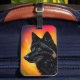 Dieser Gepäckanhänger hat einen Deutschen Schäferhund darauf abgebildet.