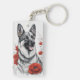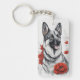 Mit diesem Schlüsselanhänger erobern Sie das Wesen der Kraft und Loyalität, indem Sie einen deutschen Schäferhund unter den roten Mohnköpfen vorstellen.