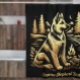 Dieser Duschvorhang ist mit einem goldenen Deutschen Schäferhund ausgestattet, der an einem Lagerfeuer in einem Wald sitzt. Es ist perfekt für Hundefreunde und ist ein tolles Geschenk für jeden Papa. Entspannen Sie in der Badezimmerdekoration mit unserem luxuriösen Duschvorhang aus schwarz und gold mit einem majestätischen deutschen Hirten, der stolz auf einem Hügel sitzt. Dieses einzigartige Stück ist perfekt für Hundeliebhaber geeignet und verleiht jedem Bad eine Touch der Eleganz.