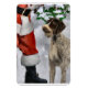 Adorable deutsche Drahthaarterrier Chancen auf den Weihnachtsmann im Wald.