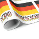 Das Wort DEUTSCHLAND erscheint unterhalb der deutschen Flagge. Die Flagge ist drei vertikale Streifen von rot, schwarz und gold. Teilen Sie Ihr Erbe mit diesem Geschenkpapier.