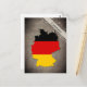 Postkarte mit einem Umriss von Deutschland, gefärbt in den Farben der Nationalflagge.