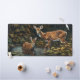 Un joli tableau d'une doe blanche et de son jeune faon qui plonge dans l'étang jusqu'au cool.