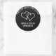 Deux cœurs Autocollants de mariage à double cœur d'amour. Autocollants et sceaux d'enveloppe tendance avec nom personnalisé du couple de mariés. Idéal pour les cadeaux de fête, les invitations et plus encore. Dessin de symbole d'amour entrelacé à la main. Deux cœurs entrelacés avec couleur de fond personnalisable. Dessin de cœurs entrelacés romantiques. Thème de romance. Parfait pour le mariage, la fête de fiançailles, l'anniversaire, la douche de mariée, etc. Exemple en noir et blanc.