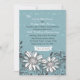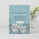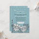 Une conception florale décontractée comportant deux marguerite-comme des fleurs entourées par le feuillage tourbillonnant avec un bleu sur l'arrière - plan bleu. Une invitation élégante et moderne.
