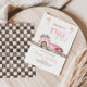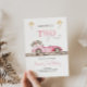 Préparez-vous à une fête d'anniversaire enivrante avec notre invitation à thème rose "DEUX Fêtes". Montrant une voiture de course rose épurée et un drapeau à damiers flottant, cette carte est parfaite pour une fille qui aime la vitesse. Avec des polices roses ludiques et des détails personnalisables, il est sûr de commencer une fête d'anniversaire inoubliable, remplie d'adrénaline.