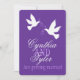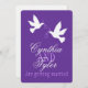 Double face simple 2 inséparable blanc / colombes avec faire-part de mariage rubans violets. Conçu pour un mariage officiel hébergé par le couple à épouser. Personnaliser avec vos propres détails contient les détails RSVP.