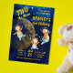 Deux la lune 2ème anniversaire modèle invitation avec mignon ours en peluche drôle dans un casque et pantalon volant dans l'espace sur le ciel céleste avec demi lune dorée à l'arrière - plan.