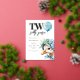 l'histoire d'un jalon joyeux - tout premier anniversaire, une célébration enveloppée d'amour, de chaleur et d'une touche de fantaisie. Le design s’articule autour d’une oie charmante, joliment illustrée comme s’il était tiré des pages d’un livre pour enfants bien-aimé. Il n’est pas n’importe quelle oie, il est "une oie idiote", habillé pour une fête dans une couronne rayée casquette et fleurie, accrochant fièrement un ballon bleu. Son expression est pleine de vision, innocente et pleine de personnalité, comme celle d'un enfant de deux ans qui découvre le monde.