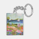 Deux voiliers et Cottage I de Karen Fields. Scène ludique et lumineuse avec fleurs, arbres, cottage et voiliers sur l'eau.