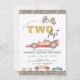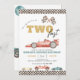 Une jolie invitation vintage pour l'anniversaire d'une voiture de course pour une fête d'anniversaire.