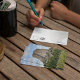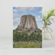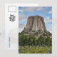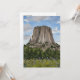 Auf dieser Postkarte befindet sich ein Aquarellportrait des Nationaldenkmals des Tower von Devils in Wyoming.