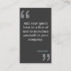 De grandes guillemets encadrent l'avant de cette conception carte de visite pour le devis ou l'expression souhaités. Amplissez l'espace à l'arrière pour vos coordonnées. © 1201AM DESIGNS