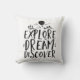 Travel cite le coussin avec lettrage à la main design typographie de police. Joli et sucré. Explorez. Rêvez. Découvrez. La couleur Arrière - plan peut être customisée à la couleur désirée.