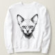Devon Rex Cat Sketch Women's Sweater." A detailed monochrome portrait of a large-eared Devon Rex. This artistic drawing is a perfect gift for cat moms and owners of this unique, curly-haired cat breed. Show off your Devon Rex pride! A cozy women's white crewneck for casual style.