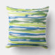 Coussin imprimé avec motif rayé abstrait en bleu, vert et blanc, à partir d'aquarelle originale.