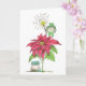 Eine Fee, die einen Sparkler hält, steht auf ein rotes poinsetta, das einen Topf Aquamarines versteckt. Eine Spaßillustration für Dezember-Geburtstage!