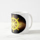Dharma Wheel Symbol auf braunem Himmelshintergrund