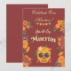 Die Einführung unserer exquisiten Dia de los Muertos Invitation, ein wunderschön gestaltetes Tor zu einer Feier, die Kultur, Erinnerung und Einheit umfasst. Diese Einladung ist nicht nur ein Stück Papier, sondern auch ein Einblick in die seelenvolle Essenz von Dia de los Muertos. Front Design: Die Vorderseite der Einladung besticht durch eine elegante Fusion traditioneller Elemente aus der Dia de los Muertos. Marigolds und Zuckerschädel verbinden sich mit zarten Papel-Picadombannern und schaffen so eine lebendige Grenze, die den festlichen Geist des Ortes symbolisiert. In der Mitte steht die berühmte Catrina, die mit lebhaften Blume und einem aufwändigen Make-up geschmückt ist, als Erinnerung der fröhlichen Feier von Leben und Tod.