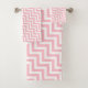 Diagonal Zickzack, rosa und weiß Badhandtuch Set