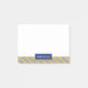 Personalisierte Post-Itanmerkungen mit Ihrem Namen auf einem blauen Aufkleber auf diagonalen Streifen im Weiß, im Senfgelb und im Marineblau.