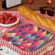 Diese Teller haben ein Diamantenmuster darauf.