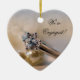 Erinnern Sie sich an den Tag, an dem Sie sein Heiratsangebot mit dem eleganten Diamond Ring und Pearls Verlobung Heart Shaped Ornament angenommen haben. Dieser edle Brauch We're Verlobt Ornament verfügt über ein nahes Foto von einem runden Diamant Verlobung Ring und weißer Perlenhalskette.
