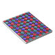 Ce formidable bloc-notes a un motif abstrait avec des rangées de diamants rouges, bleu clair et bleu foncé dessus. Chaque rangée est séparée par une rangée de diamants noirs. Chacun des diamants noirs a un trou au milieu. Le haut à gauche de chaque diamant ressemble à une lueur. Voici l'amusement, vous pouvez remplir ce trou avec un choix de plus de 200 couleurs pour faire un design unique. Ici, les trous ont été remplis d'une couleur rose vif perceuse comme exemple. Pour sélectionner votre couleur et voir l'effet qu'elle a sur la conception, cliquez simplement sur le bouton "customiser", allez à la section des couleurs et cliquez sur arrière - plan puis sélectionnez la couleur que vous souhaitez mettre dans la conception. Vous pouvez essayer autant de couleurs que vous le souhaitez jusqu'à ce que vous trouviez celui qui fonctionne pour vous.