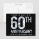 Eine individuell bedruckte Postkarte, die Sie personalisieren/anpassen können (online editieren), mit dem Namen des Paares, das seinen 60. Jahrestag der Diamantenhochzeit feiert, oder dem Namen des Ortes, der das 60. Jahr feiert. Dieses elegante, zeitgenössische, schlichte Schwarz- und Diamantenblau-Design zeichnet sich durch ein besonders designtes Imitat aus. Sie können die Namen des Paares ganz einfach auf der Vorderseite der Karte personalisieren, indem Sie die Beispielnamen und das Veranstaltungsdatum im Bereich oben personalisieren übertippen. Achten Sie jedoch darauf, die Rechtschreibung zu verdoppeln, bevor Sie bestellen, da das, was Sie auf dem Bildschirm sehen, wenn Sie in den Warenkorb hinzufügen, genau das ist, was gedruckt wird! Diese beruflichen, digitalen Tinten bedruckten, industriellen Grußkarten werden überall auf der Welt gedruckt und an Sie ausgeliefert. Ich schlage vor, dass Sie mindestens eine Woche vor Ihrem Jubiläum Party für die Lieferung. (längere Frist für Länder außerhalb der USA).