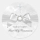Erste Heilige Kommunion Sticker. Eleganter Silberdiamantenbogen und hübsche weiße Spitze. Bitte beachten Sie: Alle flachen Bilder haben keine echten Bögen oder Juwelen!
