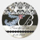 DIAMOND FEATHERS WHITE BLACK SILK DAMASK MONOGRAM RUNDER AUFKLEBER