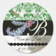 DIAMOND FEATHERS WHITE GREEN SILK DAMASK MONOGRAM RUNDER AUFKLEBER
