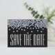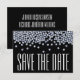 Eine einfache aber schöne moderne Hochzeit speichern Sie die Datumskarte in schwarz-weiß mit blauen Akzenten. Oben auf der Karte befinden sich Imitate Diamanteffekt Glitzer Glitzern.