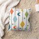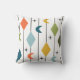 Dieses Kissen hat ein modernes Design von senkrechten Linien mit Diamanten und Bumerangs, mit Sternexplosionen im Hintergrund verstreut.