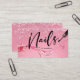 Moderne, trendige, funkelnd Visitenkarte für Nageltechniker. Das Design zeichnet sich durch einen schicken, funkelnd Hintergrund in rosa Farbe, Nagellack-Pinsel und Flaschensymbole, typografische Schriftnägel in schwarzer Schrift aus. Personalisieren Sie Ihren Namen auf der Vorderseite und Details auf der Rückseite.
