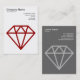 Eine Visitenkartenvorlage mit attraktivem Juwel oder Diamantenmotiv auf der Vorderseite. Firmenname, Geschäftstyp und Adresse auf der Vorderseite mit Namen, Jobtitel, Telefonie, Web- und E-Mail-Adressen auf der Rückseite, mit einem ähnlichen Layout auf grauem Hintergrund mit einem Diamantmotiv in einem leichteren Grau. Diese Karte kann auch weiter angepasst werden.