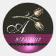 DIAMOND TULIPS SCHWARZ-WEISS PINK FUCHSIA MONOGRAM RUNDER AUFKLEBER
