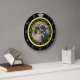 Diese elegante Uhr hat einen Diamant-Ehering-Look. Das Goldband bildet einen Kreis mit silbernen Uhrennummern um die Außenseite, die "12" ersetzt durch das Bild eines Diamanten. Es fällt alles kühl auf schwarzem Hintergrund auf (siehe Farbvariationen unter "Hochzeiten" in unserem Geschäft). Fügen Sie einfach ein Foto Braut und Bräutigam in den Raum in der Mitte hinzu. Verwenden Sie die Vorlage, um Ihr eigenes Foto hochzuladen. Sie können auch einen Textkreis hinzufügen oder das Beispiel löschen, um es leer verlassen. Um detailliertere Anpassungen vorzunehmen, "Anpassen". Dies ist das perfekte, personalisierte Geschenk für das frisch verheiratete Paar oder für einen Hochzeitsjubiläum.