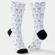 Dieses Sockenpaar zeigt eine Hochzeit- oder Verlobung-Ring mit einem silbernen Band und einem großen blauen Diamanten, der in einem niedlichen Muster angeordnet ist. Ein niedliches und lustiges Geschenk für eine Braut zu sein!