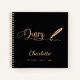 Ein schicker schwarzer Hintergrund. Mit dem Text: Tagebuch und mit Feder verziert. Personalisieren und fügen Sie einen Namen und Text (oder löschen) hinzu