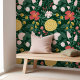 Entspannen Sie in der Innendekoration mit unserer beeindruckenden und lebendigen Blumenblüte botanische Gartenmuster Schale und Tapete mit Stock. Dieses edle Tapete mit einer Reihe von fett-roten, goldgelben und hellrosa Blüten und üppigen Blattpflanzen ist das Set vor einem dunkelgrünen Hintergrund. Dieses Tapete wurde entworfen, um die Schönheit und den Reichtum eines botanischen Gartens in Ihre Zuhause zu bringen. Es ist faszinierend und praktisch zugleich. Original Blumenarbeit und Design von Moodthology Papery.