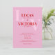 Machen Sie ein Statement mit unserer kühlen, hellen Rosa und Roten Foto Hochzeitseinladung. Mit seinen hellen Farben und der zeitgenössischen Typografie ist diese Einladung perfekt für Paare, die ihren einzigartigen Stil gewollt haben. Wenn Sie gewollt haben, den Text zu ändern, wählen Sie "Details". Klicken Sie zum Anpassen der Textposition, des Schriftartes oder der Textfarbe auf "Bearbeiten mit dem Entwurfswerkzeug".