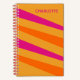 Groovy 1970er Retro-Vintages Monogramm individuelles Notebook. Dicke Streifen in Orange, Rosa und Senf. Personalisieren Sie diese stilvolle, farbenfrohe Schrift Typografie.