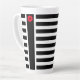 Nicht deine gewöhnlichen Streifen. Zwei vertikale Bänder unterbrechen kühn konventionelle horizontale Linien und sorgen für dynamischen Schub in klassische schwarz-weiße Streifen. Fügen Sie Ihr Monogramm dem kleinen und markanten roten Kreis hinzu. Bearbeiten Sie diese einzigartige, fett gestreifte Latte-Tasse mit Ihren Lieblingsfarben noch besser. ♡ Idyllfire